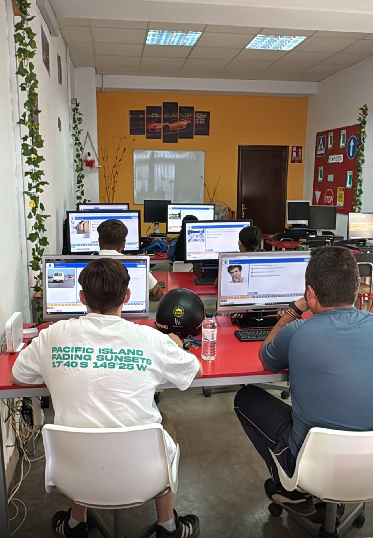 Aprende todas las normas de tráfico y requisitos específicos del examen teórico para coches. Nuestras aulas están equipadas con tecnología moderna para un aprendizaje dinámico e interactivo.